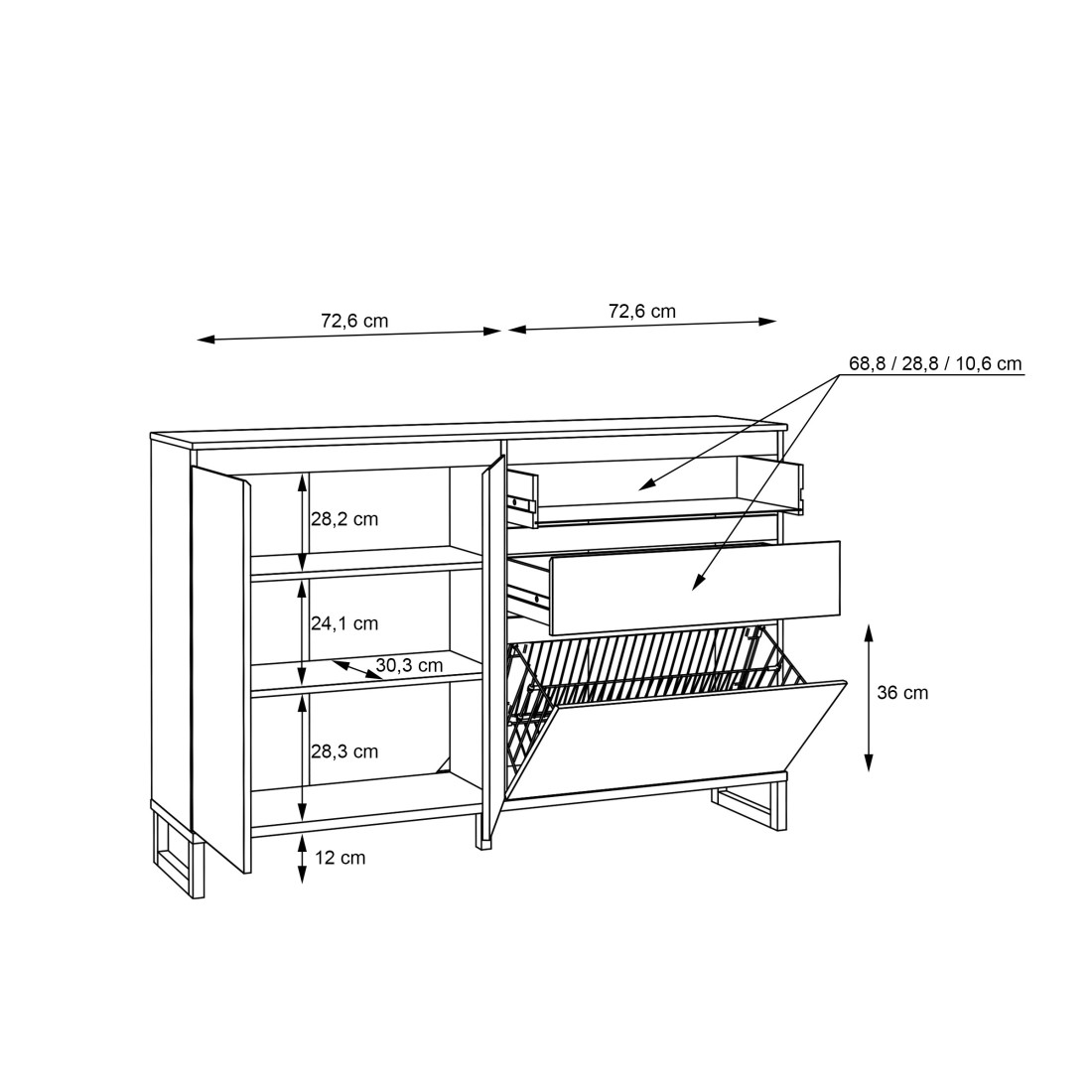 Material: Plăci aglomerate din lemn, picioare din MDF