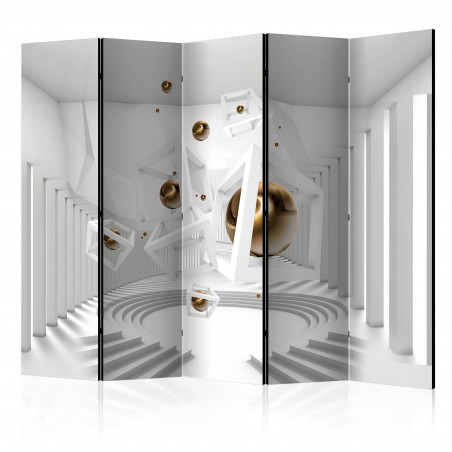 Paravanul decorativ "Geometrical Corridor II [Room Dividers]" este un decor unic pentru interioarele moderne. Paravanul este compus din 5 părți, realizat din lemn și imprimat pe ambele părți. Vă va împărți spațiul în mod discret și va crea un design interior uimitor. Datorită unei realizări perfecte și a unui design original Full HD, paravanele de cameră oferă un aspect unic oricărui interior. Paravanele decorative pentru locuințe reprezintă o modalitate originală de decorare a interiorului. De remarcat este faptul că posedă aplicații practice - paravanele de cameră pot fi utilizate de ex. pentru a ascunde un uscător de rufe. Reprezintă un decor foarte original care poate fi utilizat atât în cazul spațiilor de locuit, cât și în cazul spațiilor de lucru, de ex: frizerii, cabinete medicale sau chiar și birouri de contabilitate.