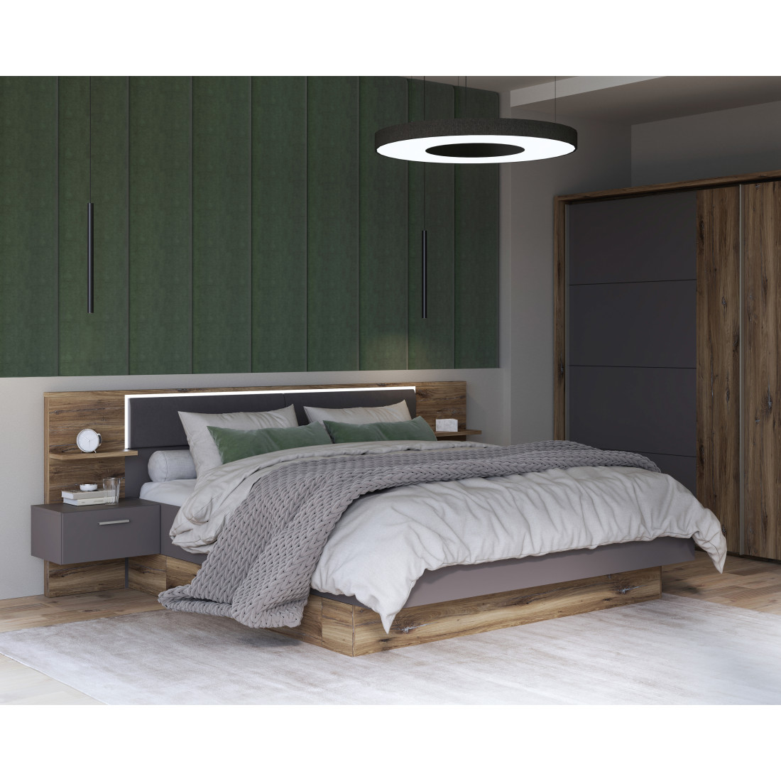 Alege un pat de dormitor confortabil și stabil, realizat din plăci aglomerate din lemn, sub orice alt aspect fiind, însă, complet neaglomerat, aducându-ți un pat cu mult spațiu de mișcare și de visare.