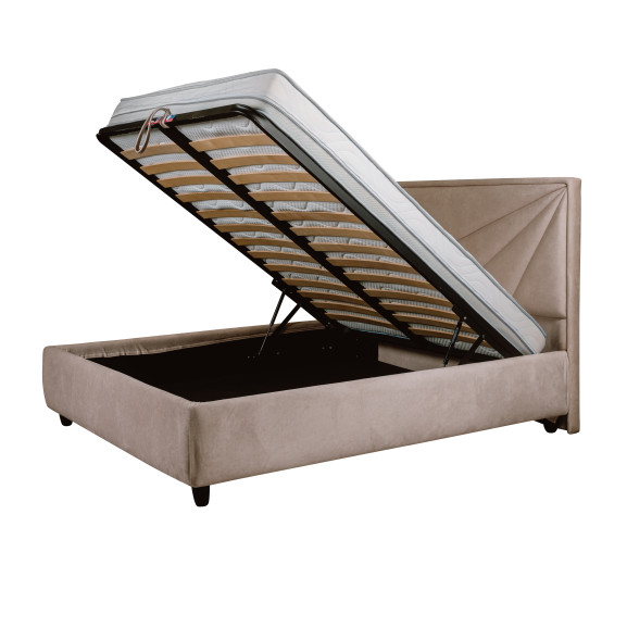 Pat Tapitat Casablanca Dimensiune Saltea 140 x 200 Cm, Somiera Rabatabila, Crem