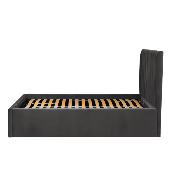 Pat Tapitat Ravel, Negru, Dimensiune Saltea 160 x 200 Cm, Cu Somiera Rabatabila