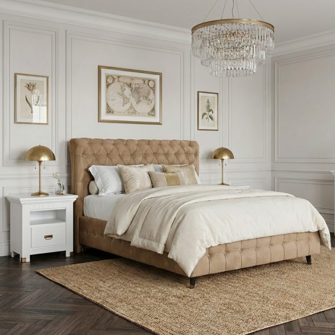 Pat Tapitat Cu Somiera Rabatabila Saint Tropez, Bej inchis, Dimensiune Saltea 160 x 200 Cm