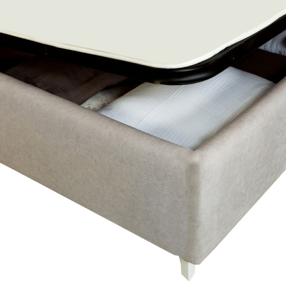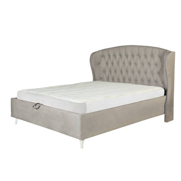 Pat Tapitat Verona, Dimensiune Saltea 140 x 200 Cm, Cu Somiera Rabatabila, Gri