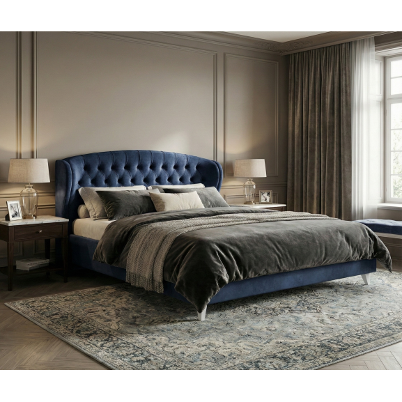 Pat Tapitat Cu Somiera Rabatabila Verona, Albastru Inchis, Dimensiune Saltea 160 x 200 Cm