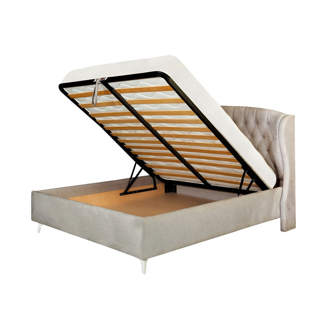 Pat Tapitat Verona, Dimensiune Saltea 180 x 200 Cm, Cu Somiera Rabatabila, Gri