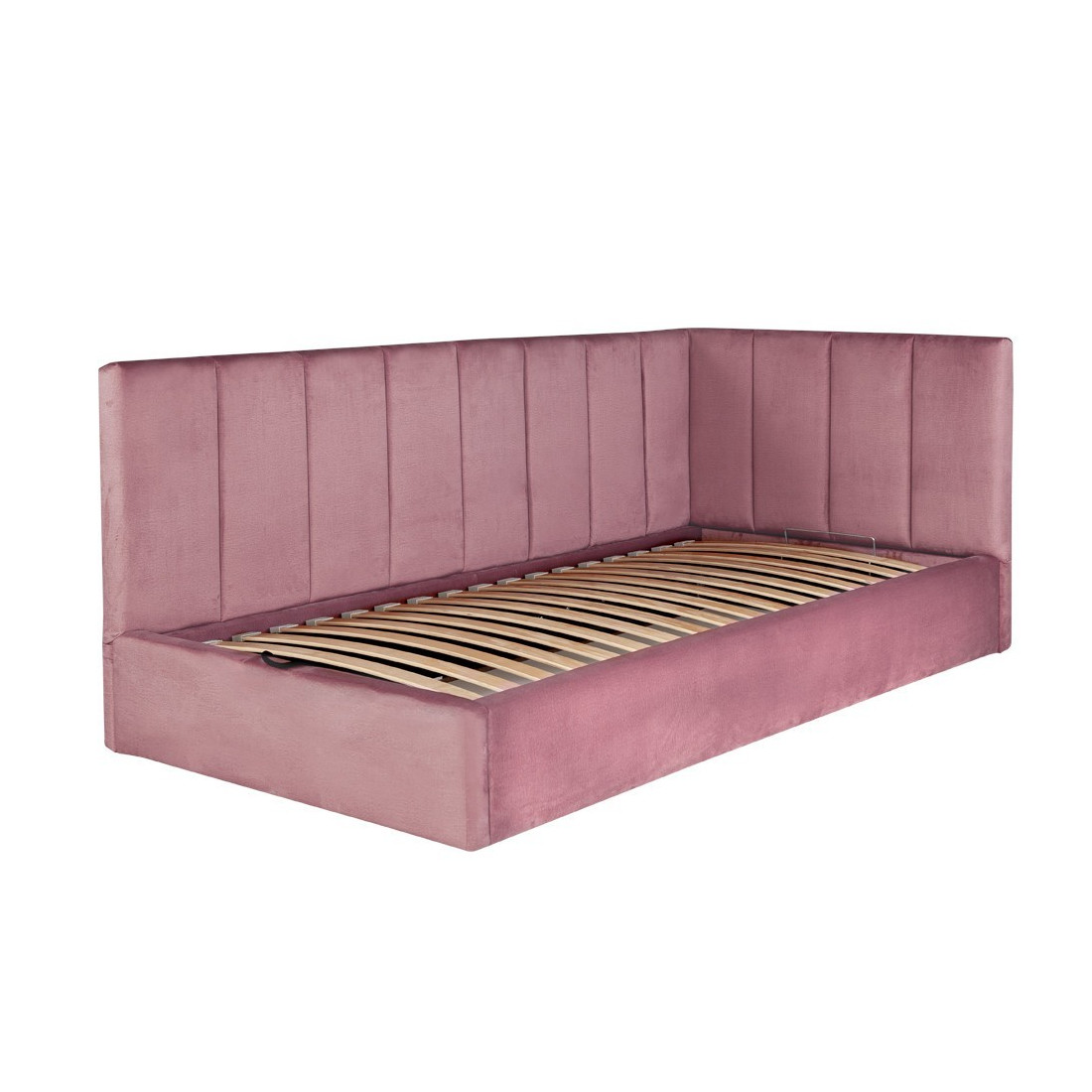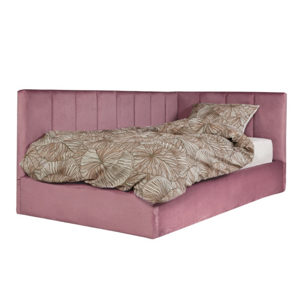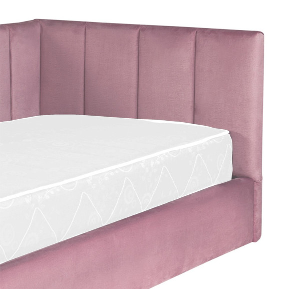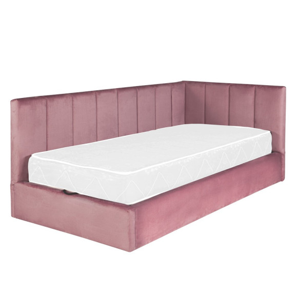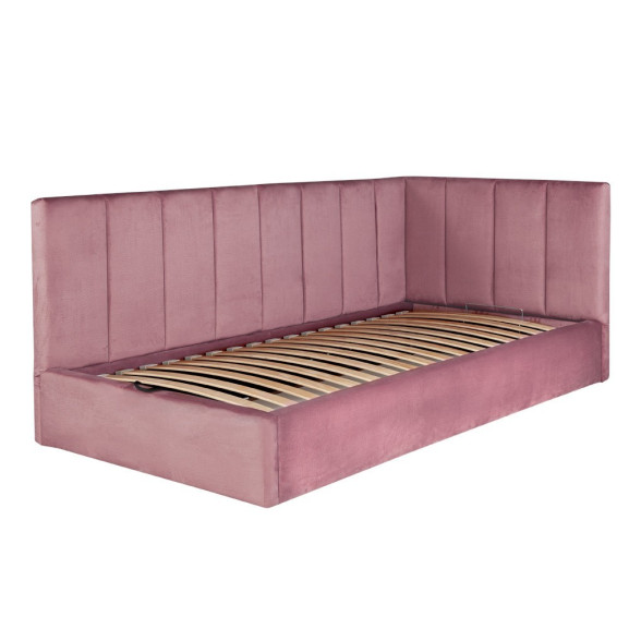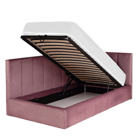 Pat Tapitat Ravel, Dimensiune Saltea 90 x 200 Cm, Somiera Rabatabila Si Panou Stanga, Roz