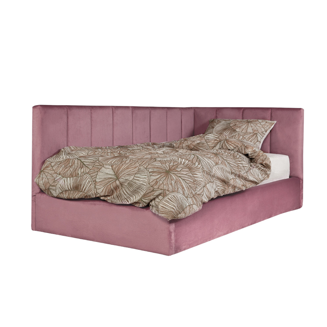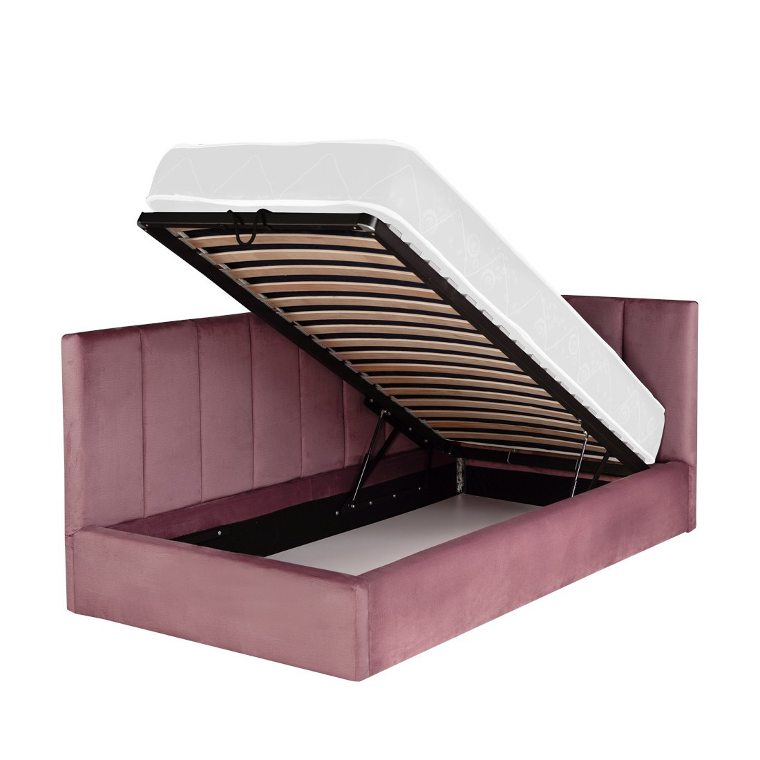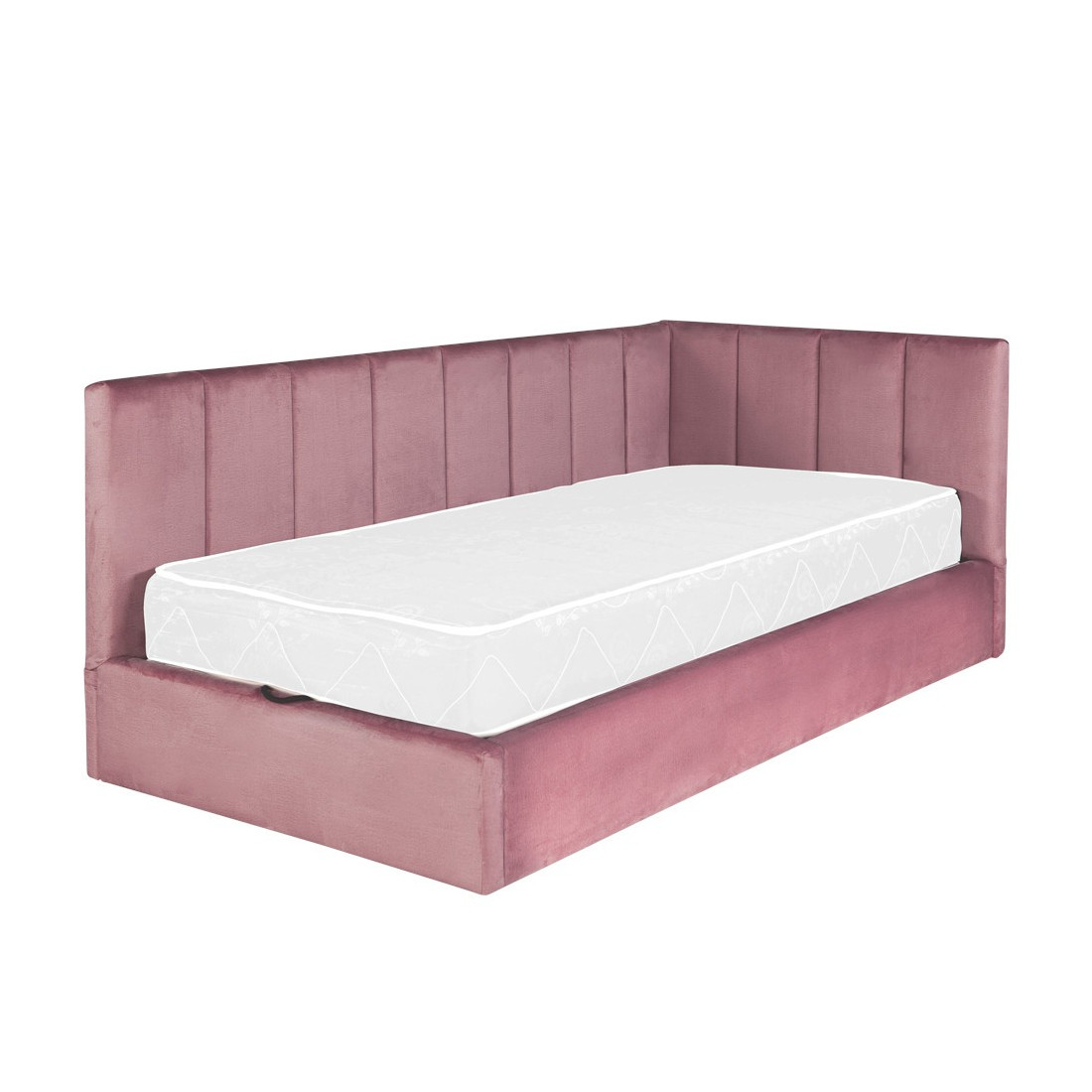 Pat Tapitat Ravel, Dimensiune Saltea 90 x 200 Cm, Somiera Rabatabila Si Panou Stanga, Roz