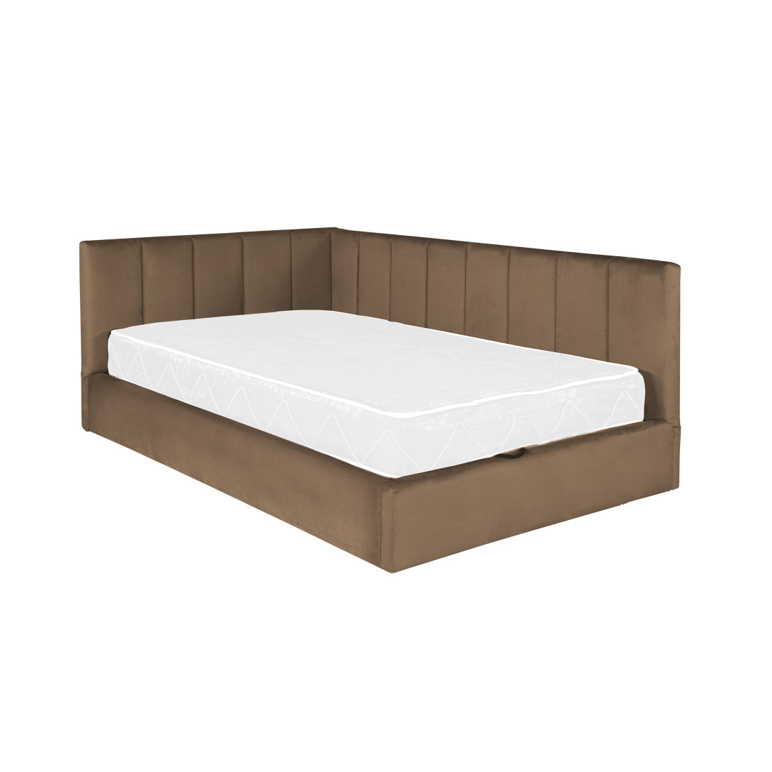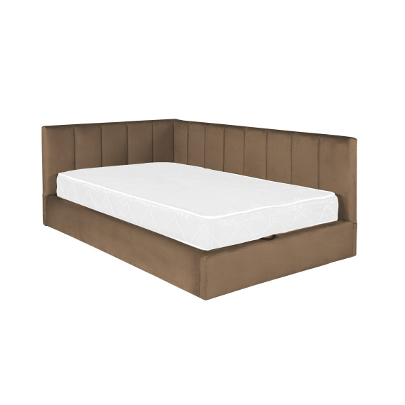 Pat Tapitat Ravel Junior, Dimensiune Saltea 120 x 200 Cm, Cu Somiera Rabatabila Si Panou, Maro