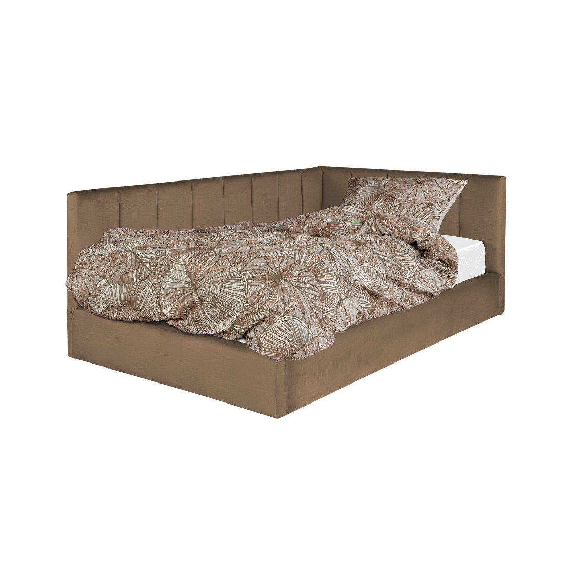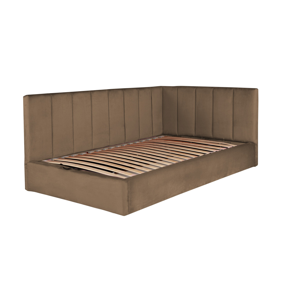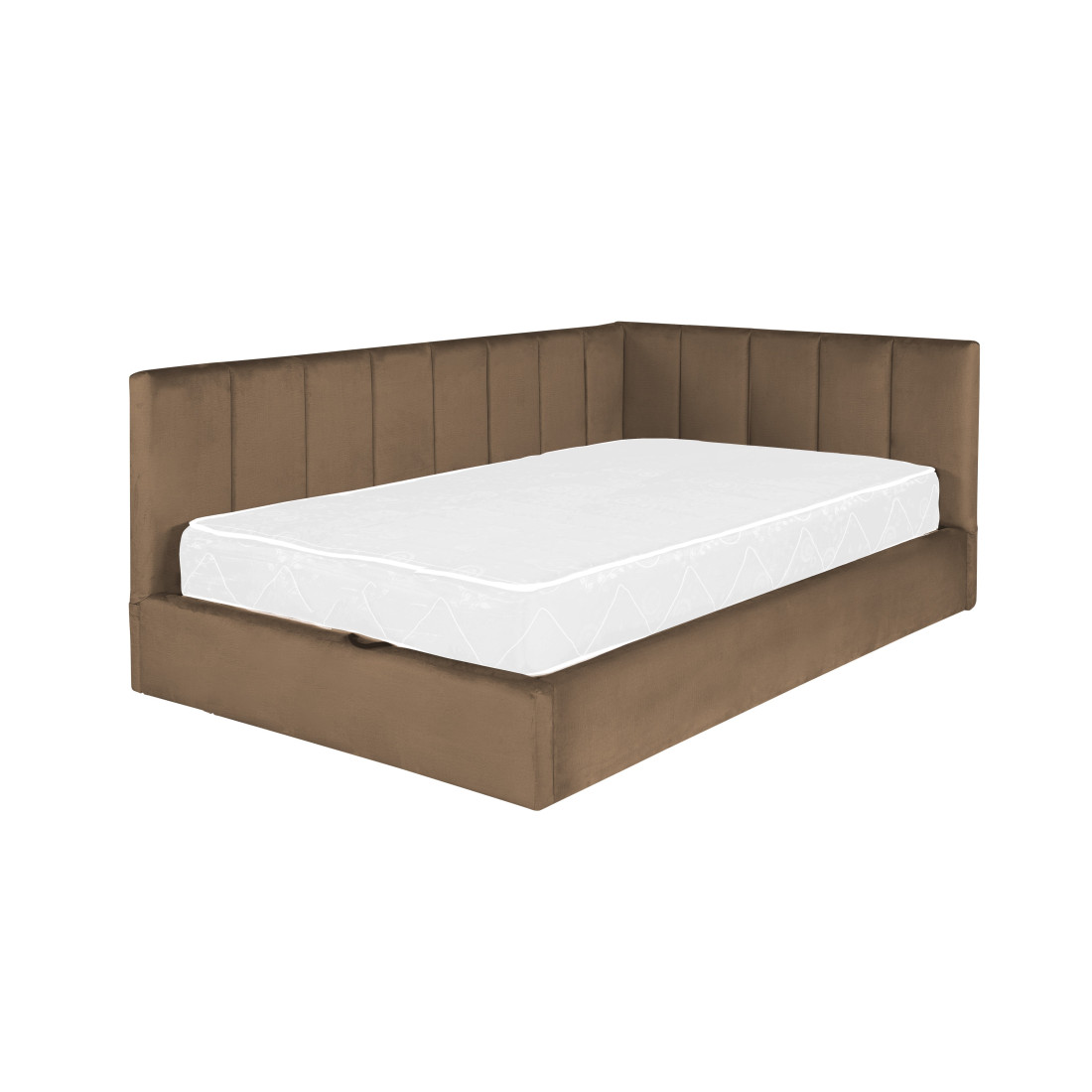 Pat Tapitat Ravel Junior, Dimensiune Saltea 120 x 200 Cm, Cu Somiera Rabatabila Si Panou Stanga, Maro