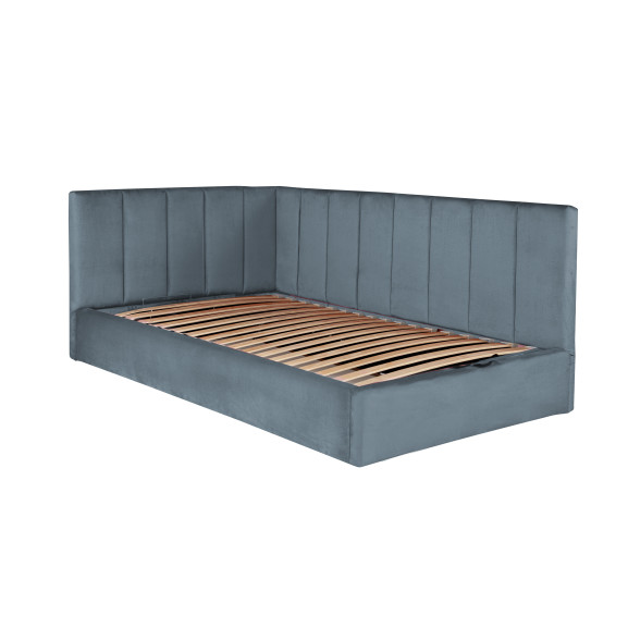 Pat Tapitat Ravel Junior, Dimensiune Saltea 120 x 200 Cm, Somiera Rabatabila Si Panou, Albastru