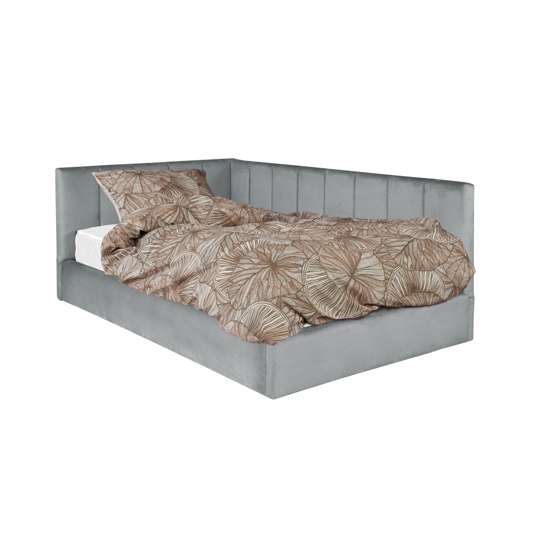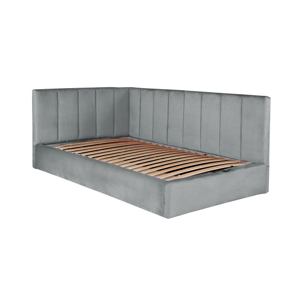 Pat Tapitat Ravel Junior, Dimensiune Saltea 120 x 200 Cm, Somiera Rabatabila Si Panou Dreapta, Gri