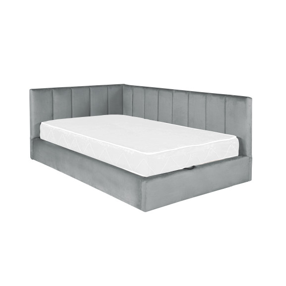 Pat Tapitat Ravel Junior, Dimensiune Saltea 120 x 200 Cm, Somiera Rabatabila Si Panou, Gri