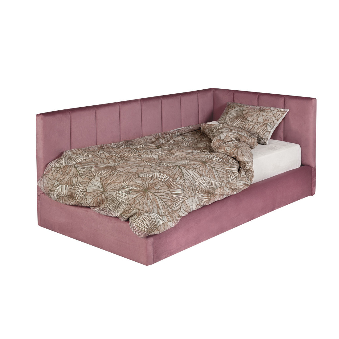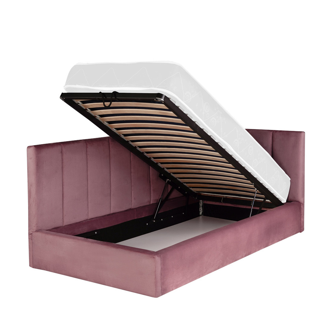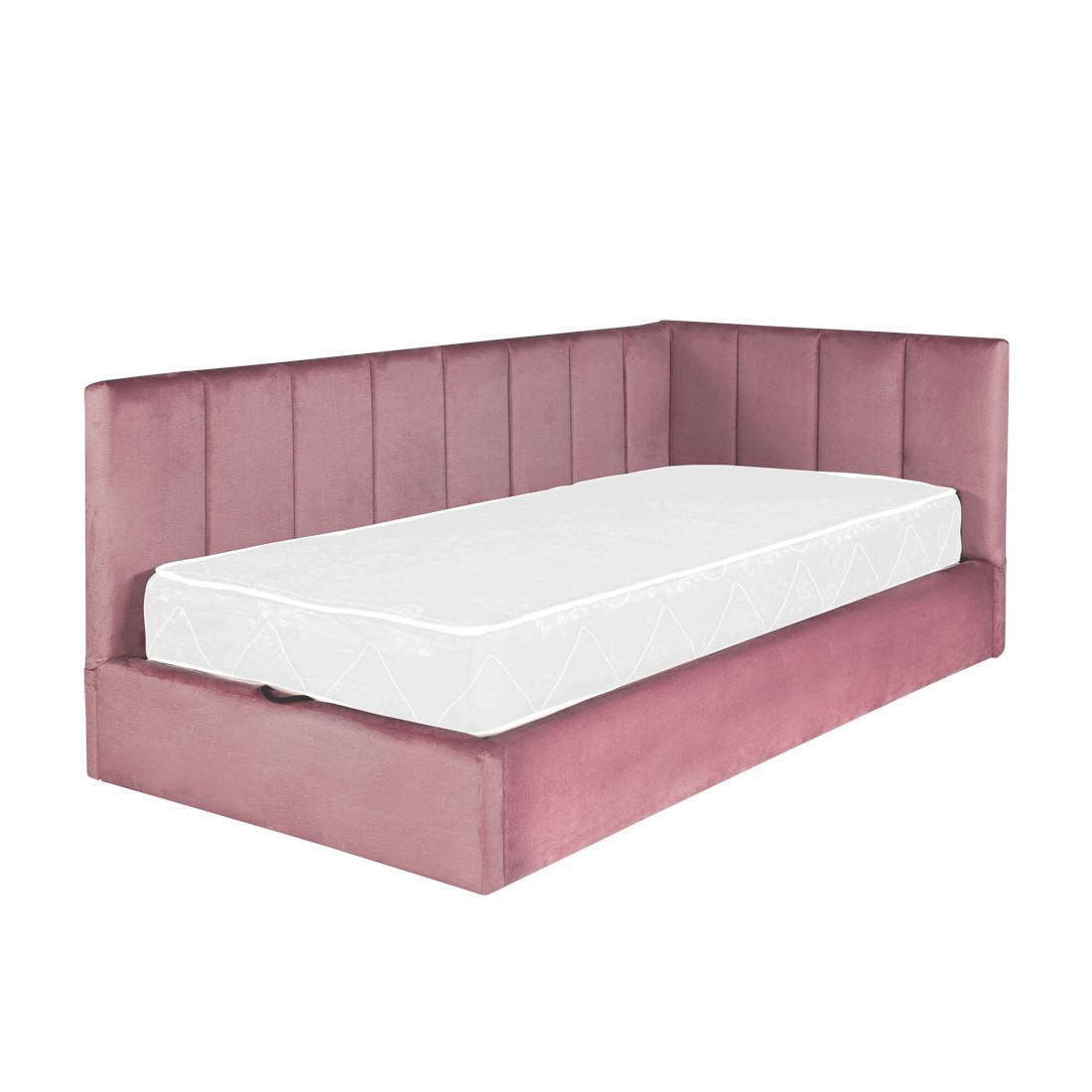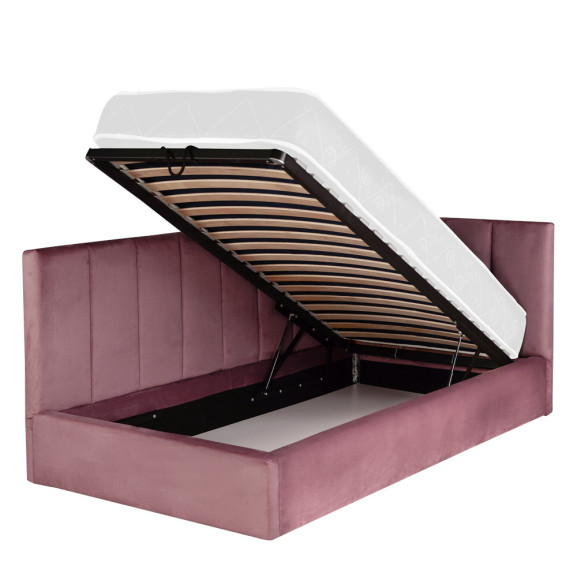 Pat Tapitat Ravel Junior, Dimensiune Saltea 120 x 200 Cm, Somiera Rabatabila Si Panou Stanga, Roz