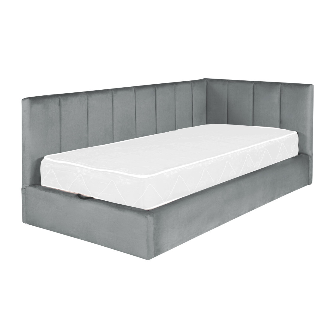 Pat Tapitat Ravel Junior Dimensiune Saltea 90 x 200 Cm, Cu Somiera Rabatabila Si Panou, Gri