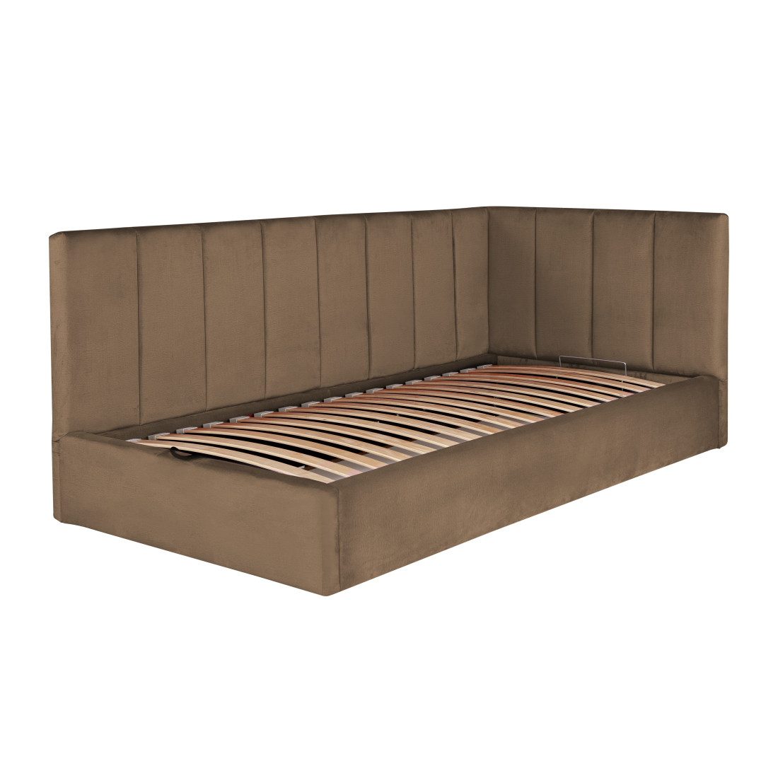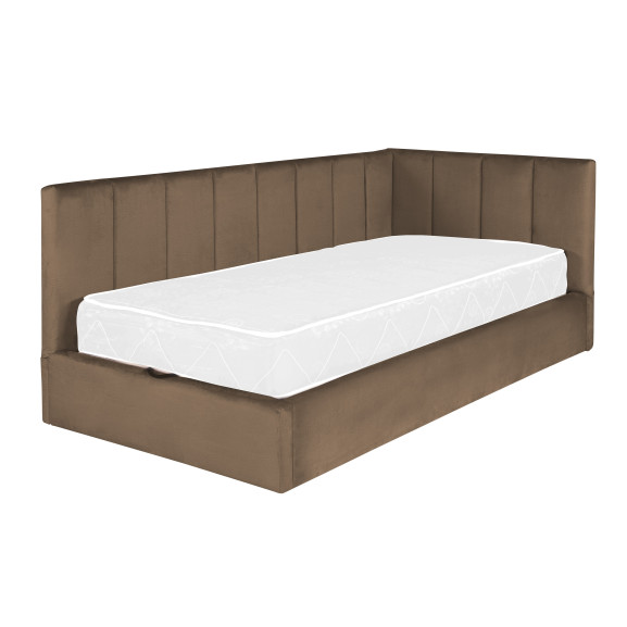 Pat Tapitat Ravel Junior, Dimensiune Saltea 90 x 200 Cm, Cu Somiera Rabatabila Si Panou Stanga, Maro