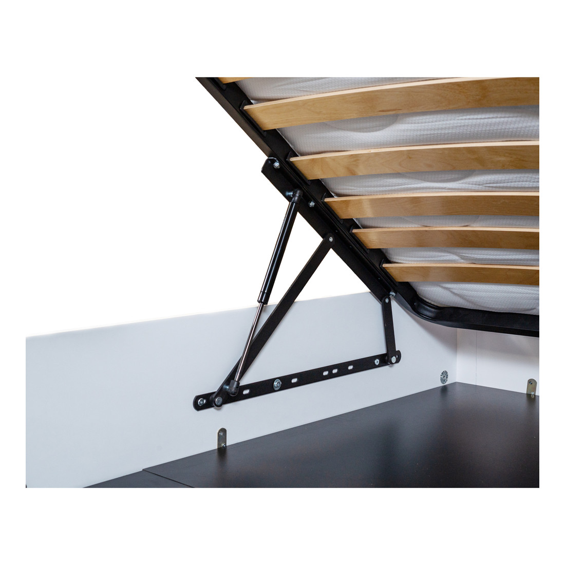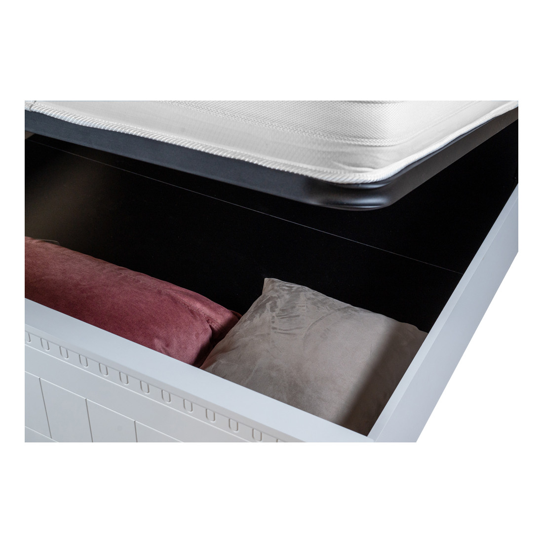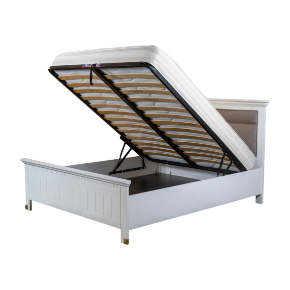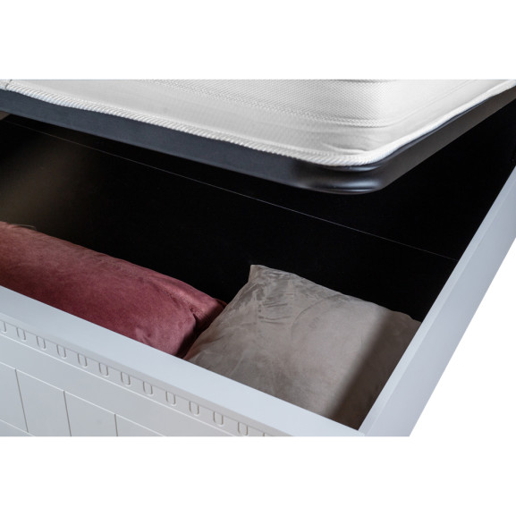 În plus, somiera rabatabilă inclusă adaugă un nivel suplimentar de practicitate, permitând utilizatorului să acceseze și să utilizeze eficient spațiul de sub pat. Această caracteristică ingenioasă este ideală pentru depozitarea obiectelor sezoniere sau a altor articole mai puțin folosite în mod frecvent.