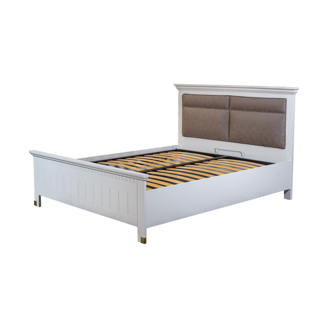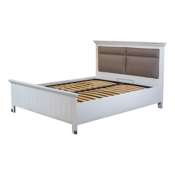 Pat Tapitat Saint Tropez, Dimensiune Saltea 160 x 200 Cm, Cu Somiera Rabatabila, Alb