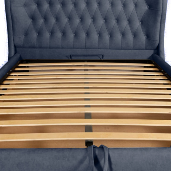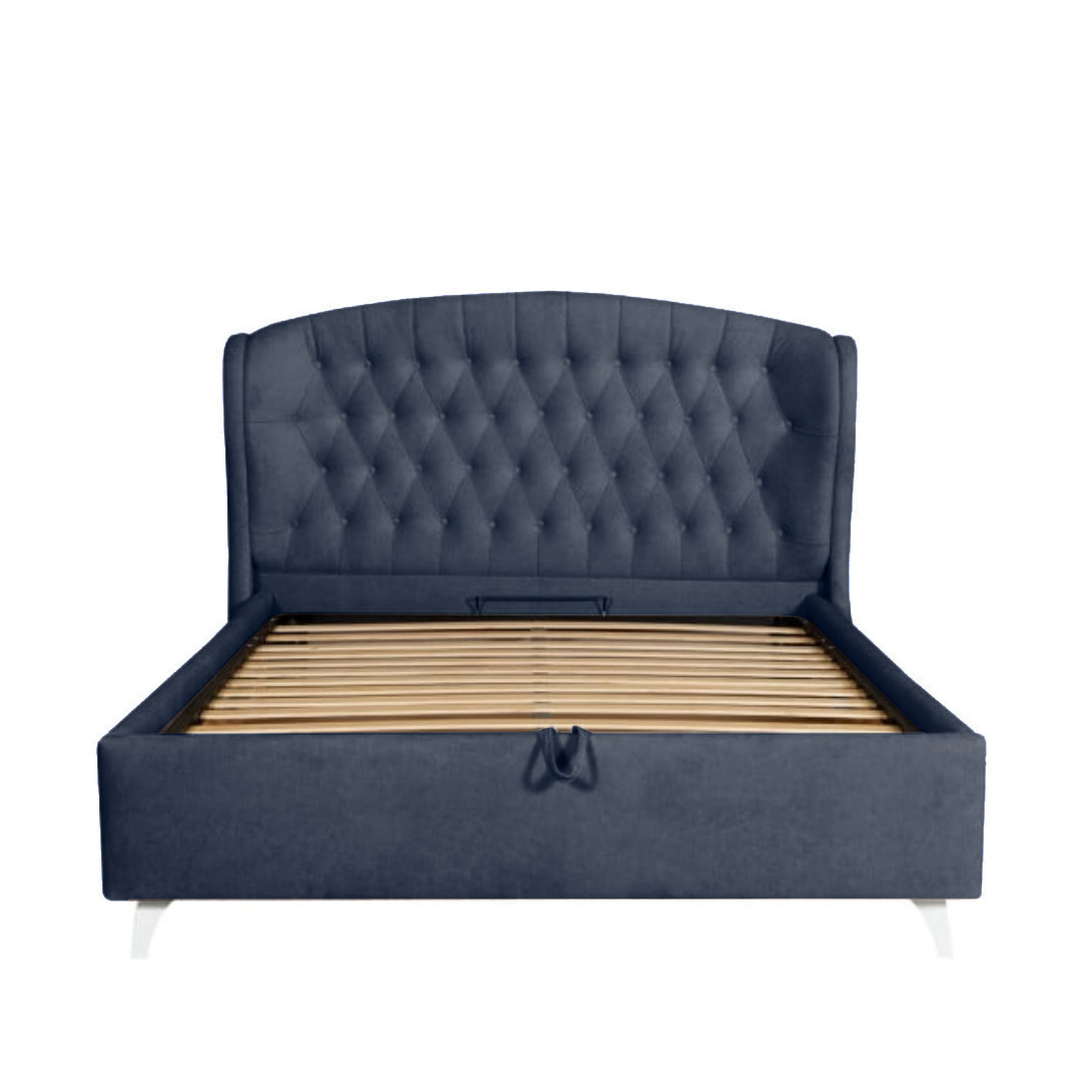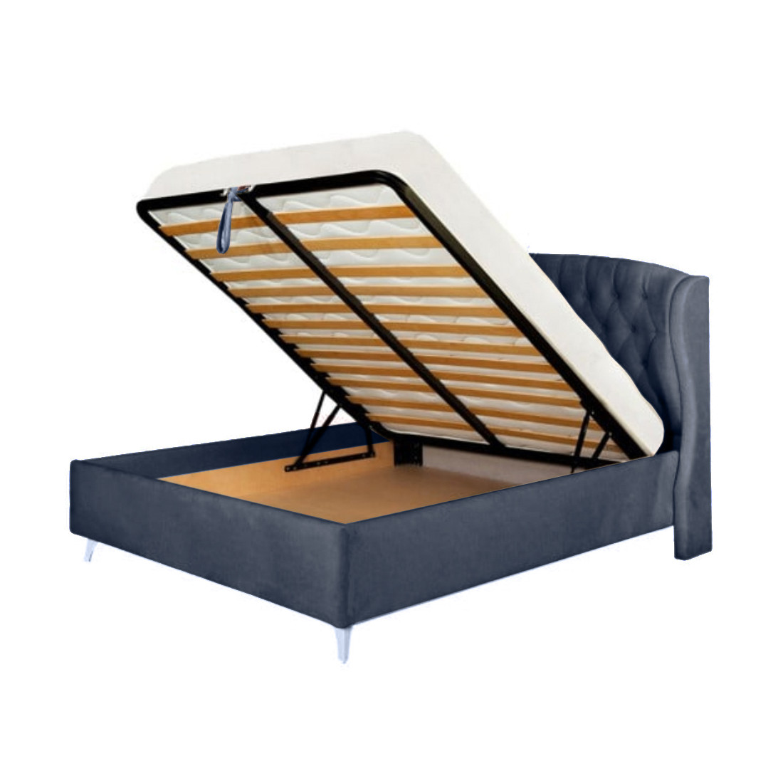 Pat Tapitat Verona, Dimensiune Saltea 120 x 200 Cm, Cu Somiera Rabatabila, Albastru Inchis