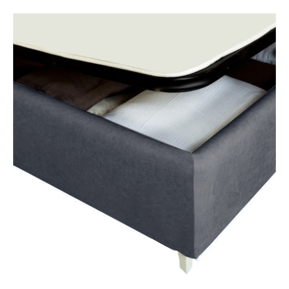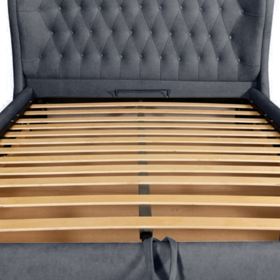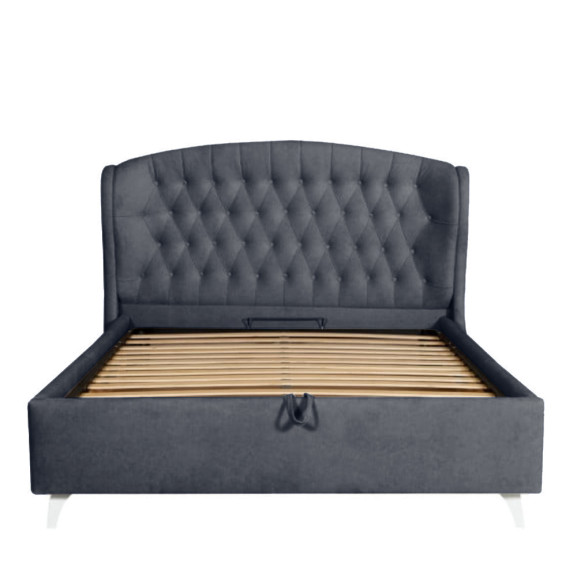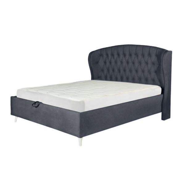 Pat Tapitat Verona, Dimensiune Saltea 140 x 200 Cm, Cu Somiera Rabatabila, Gri Inchis