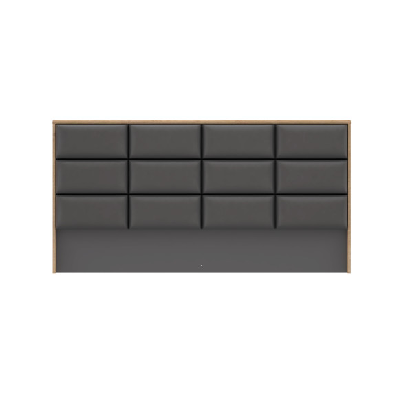 Căpătâi tapițat: Un panou impunător de 169.5 cm lățime, cu 12 segmente matlasate pentru un suport ergonomic și un aspect sofisticat.