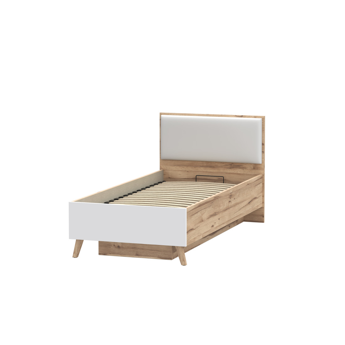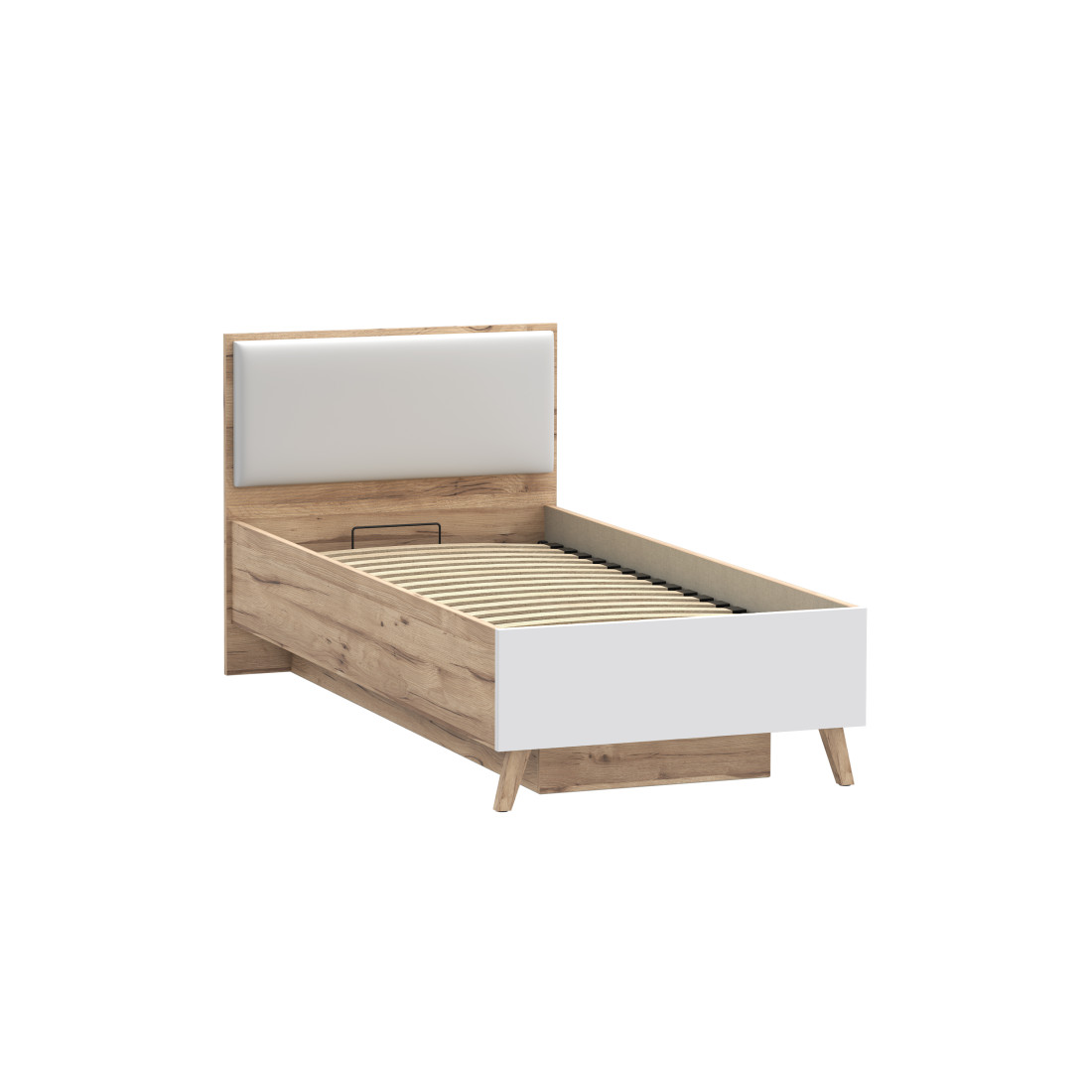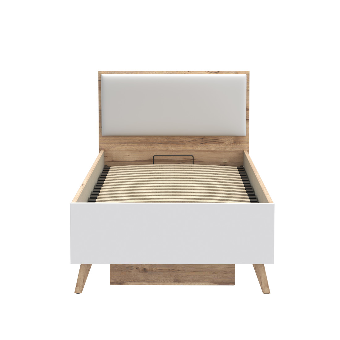 Pat Vankka, Dimensiune Saltea 90 x 200 Cm Somiera Rabatabila, Stejar Pardosit si Alb-01