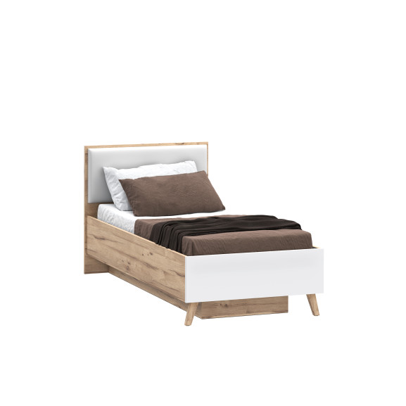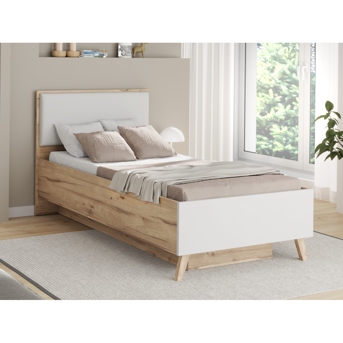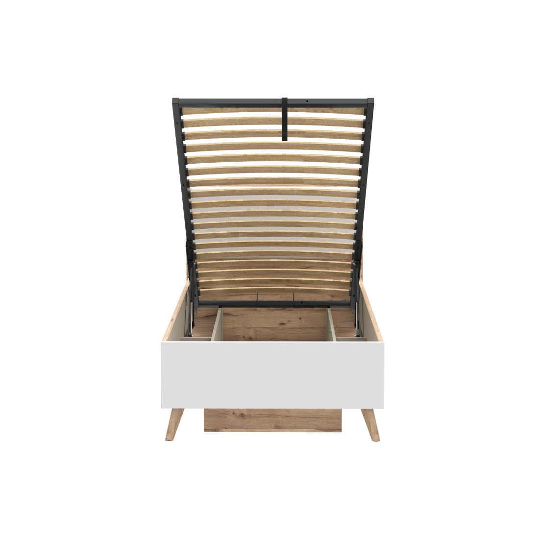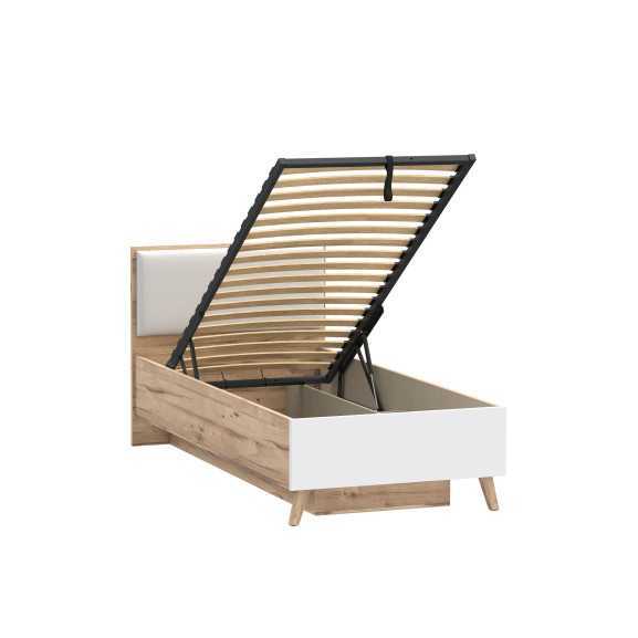 Pat Vankka, Dimensiune Saltea 90 x 200 Cm Somiera Rabatabila, Stejar Pardosit si Alb-01