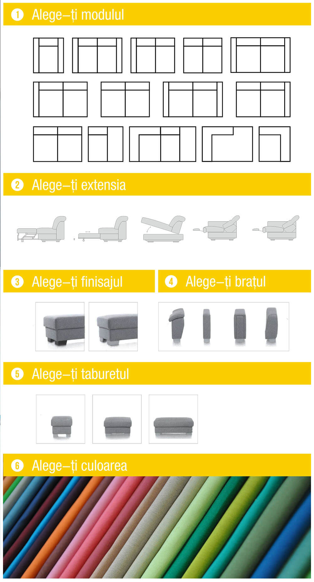 Poți alege din zeci de module pentru a se potrivi spațiului tău și din sute de culori pentru a-ți exprima personalitatea.