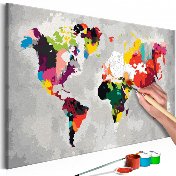 Vrei să te relaxezi într-un mod creativ? Cauți un mod original de a te distra împreuna cu cei dragi și în același timp să-ți dezvolți creativitatea și să te simți ca un adevarat artist? Nimic mai ușor! Descoperă cel mai original hobby al acestui an - pictatul pe numere. Un kit colorat de pictura "World Map (Bright Colours)" ce reprezintă o idee inedită pentru petrecerea timpului liber. Kit-ul de pictură pe numere "World Map (Bright Colours)" poate fi o activitate pentru oameni de toate vârstele. Perfect pentru pictorii amatori! În plus, rezultatul obținut este e decorațiune gata de expus pe perete.