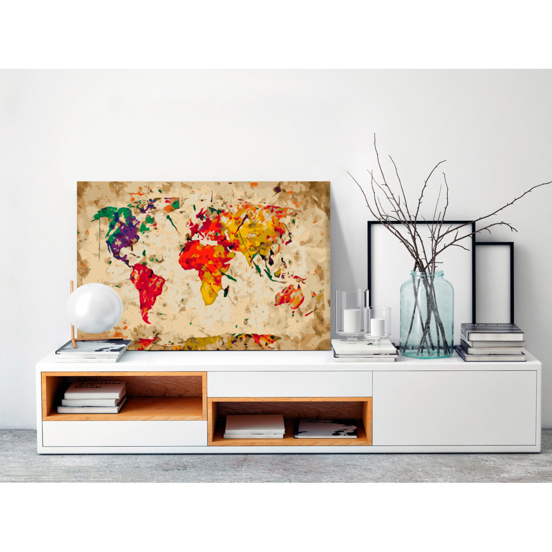 Vrei să te relaxezi într-un mod creativ? Cauți un mod original de a te distra împreuna cu cei dragi și în același timp să-ți dezvolți creativitatea și să te simți ca un adevarat artist? Nimic mai ușor! Descoperă cel mai original hobby al acestui an - pictatul pe numere. Un kit colorat de pictura "World Map (Colour Splashes)" ce reprezintă o idee inedită pentru petrecerea timpului liber. Kit-ul de pictură pe numere "World Map (Colour Splashes)" poate fi o activitate pentru oameni de toate vârstele. Perfect pentru pictorii amatori! În plus, rezultatul obținut este e decorațiune gata de expus pe perete.