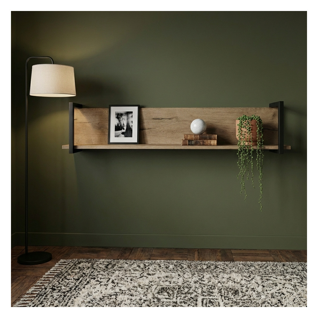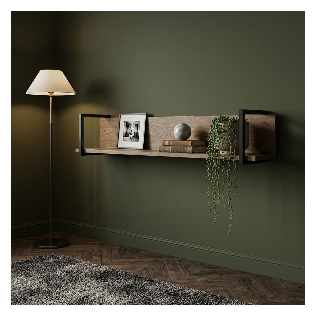 Cu nuanțe de Negru și Smoked Oak, această poliță se integrează perfect într-o varietate de decoruri interioare. Este o adăugare versatilă, potrivită atât pentru spațiile moderne, cât și pentru cele tradiționale.