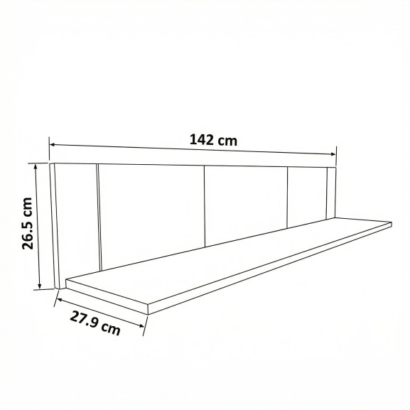 Dimensiuni: Lățime 145 cm x Adâncime 28 cm x Înălțime 26.5 cm – suficient de adâncă pentru obiecte decorative medii.