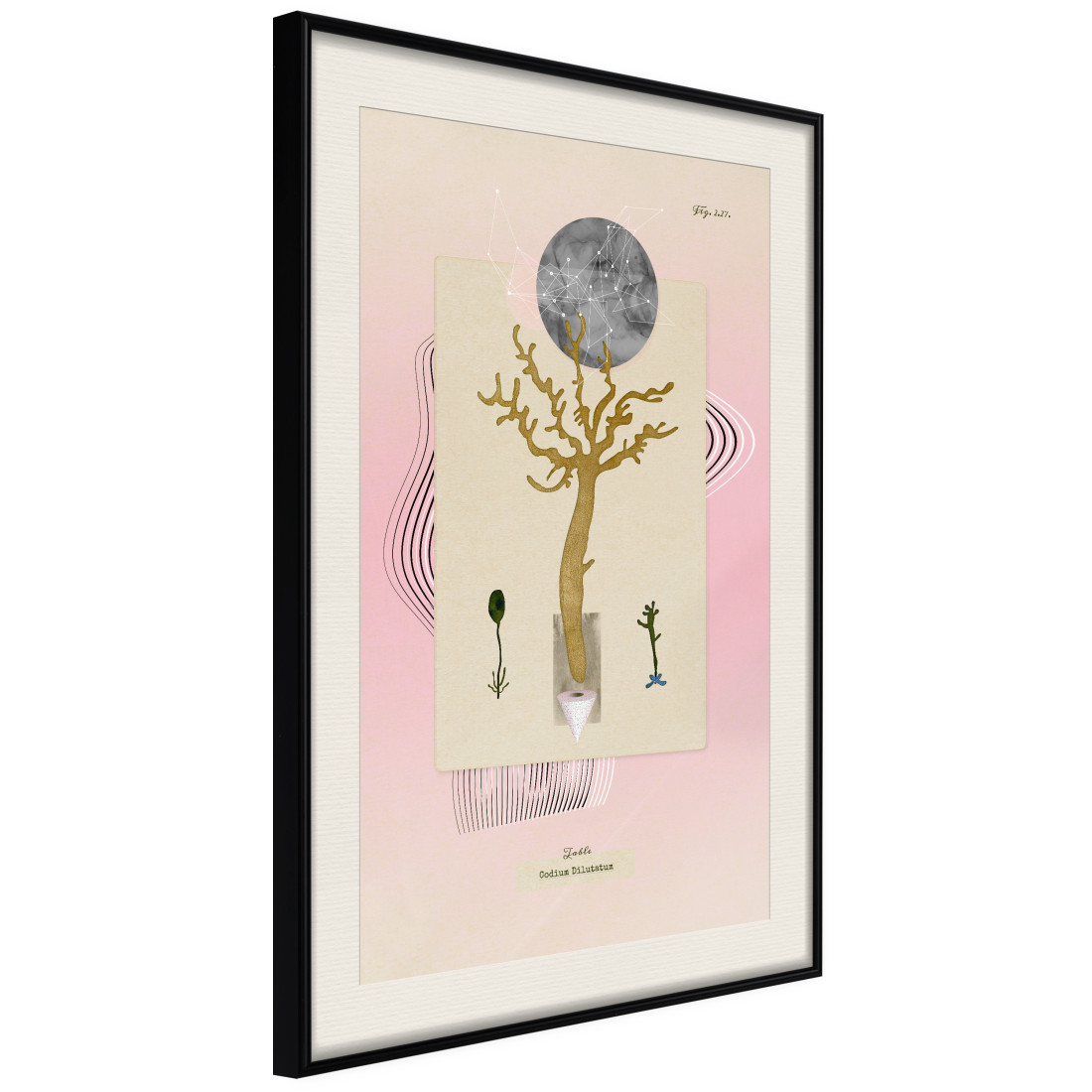 Inserarea passe-partout-ului écru, va accentua culorile posterului și va crea un contrast suplimentar între grafică, ramă și perete. Mai mult, conferă o impresie delicată a unui cadru tridimensional și joacă, de asemenea, rolul unui alt strat protector pentru poster. Posterul este protejat cu sticlă acrilică, având o agățătoare fixată pe partea din spate a ramei.