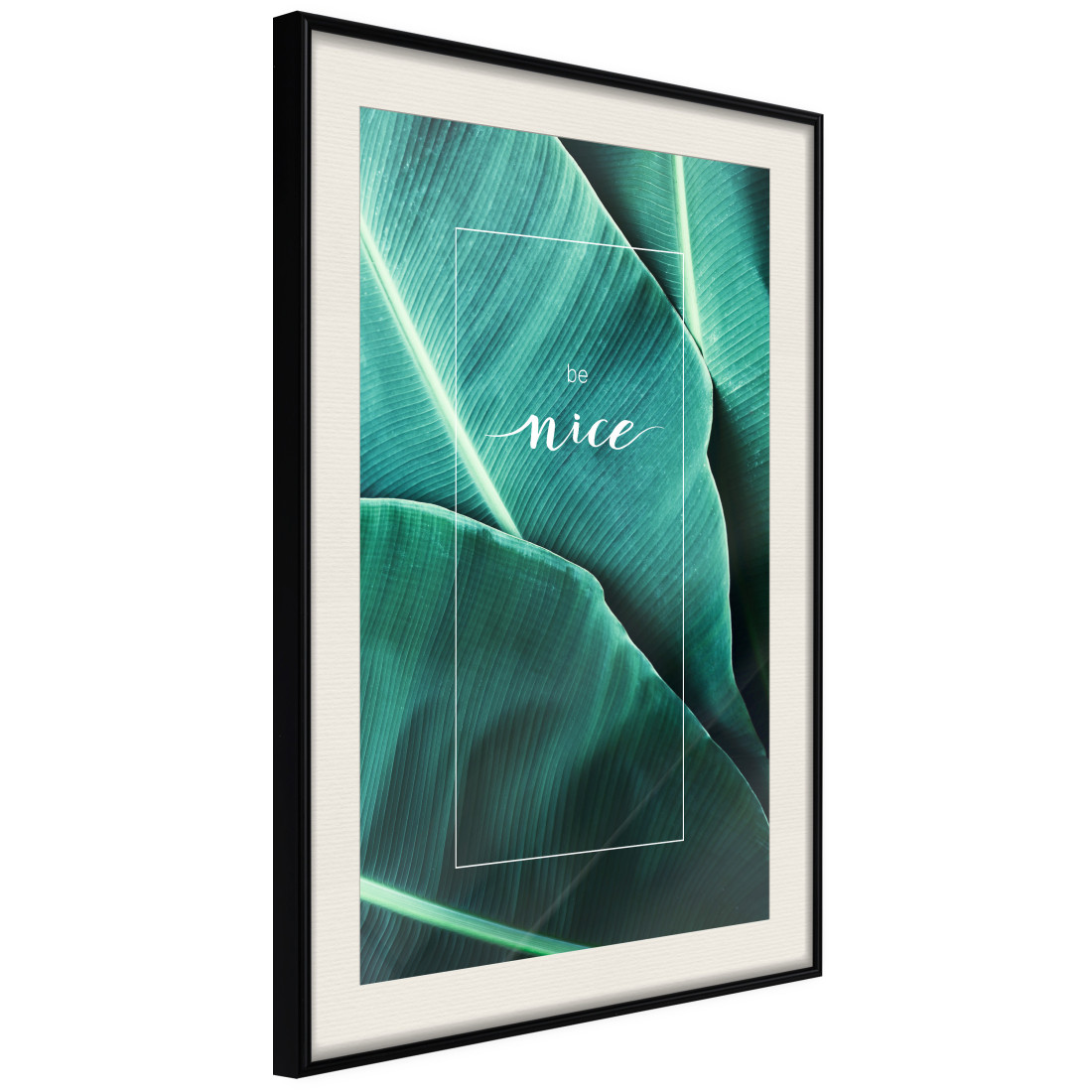 Materiale de cea mai bună calitate Posterul "Poster - Banana Leaves with a Message (Green)" este imprimată în tehnologie HD pe hârtie de 170 g/m² de calitate superioară, reproducând perfect culorile. Imprimarea folosită este rezistentă la radiații UV, datorită căreia culorile nu se estompează, chiar și la expunere îndelungată la lumina soarelui. Atât posterul cât și rama sunt confecționate din materiale sigure și inodore, astfel încât acestea sunt perfecte pentru a fi atârnate în orice cameră, inclusiv în dormitorul dumneavoastră sau al copilului dumneavoastră.