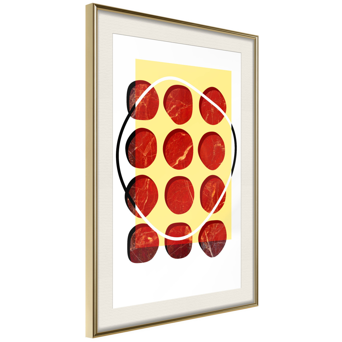 Inserarea passe-partout-ului écru, va accentua culorile posterului și va crea un contrast suplimentar între grafică, ramă și perete. Mai mult, conferă o impresie delicată a unui cadru tridimensional și joacă, de asemenea, rolul unui alt strat protector pentru poster. Posterul este protejat cu sticlă acrilică, având o agățătoare fixată pe partea din spate a ramei.