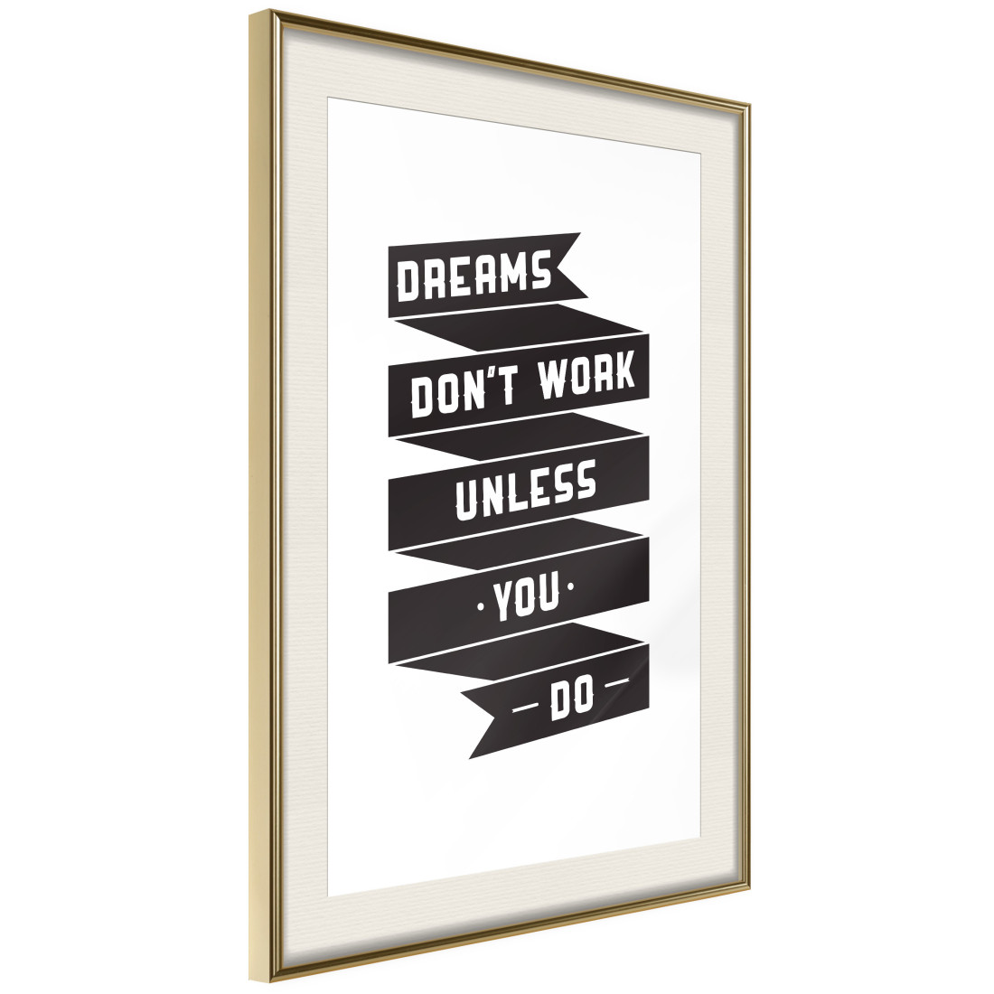 Materiale de cea mai bună calitate Posterul "Poster - Dreams Don't Come True on Their Own II" este imprimată în tehnologie HD pe hârtie de 170 g/m² de calitate superioară, reproducând perfect culorile. Imprimarea folosită este rezistentă la radiații UV, datorită căreia culorile nu se estompează, chiar și la expunere îndelungată la lumina soarelui. Atât posterul cât și rama sunt confecționate din materiale sigure și inodore, astfel încât acestea sunt perfecte pentru a fi atârnate în orice cameră, inclusiv în dormitorul dumneavoastră sau al copilului dumneavoastră.