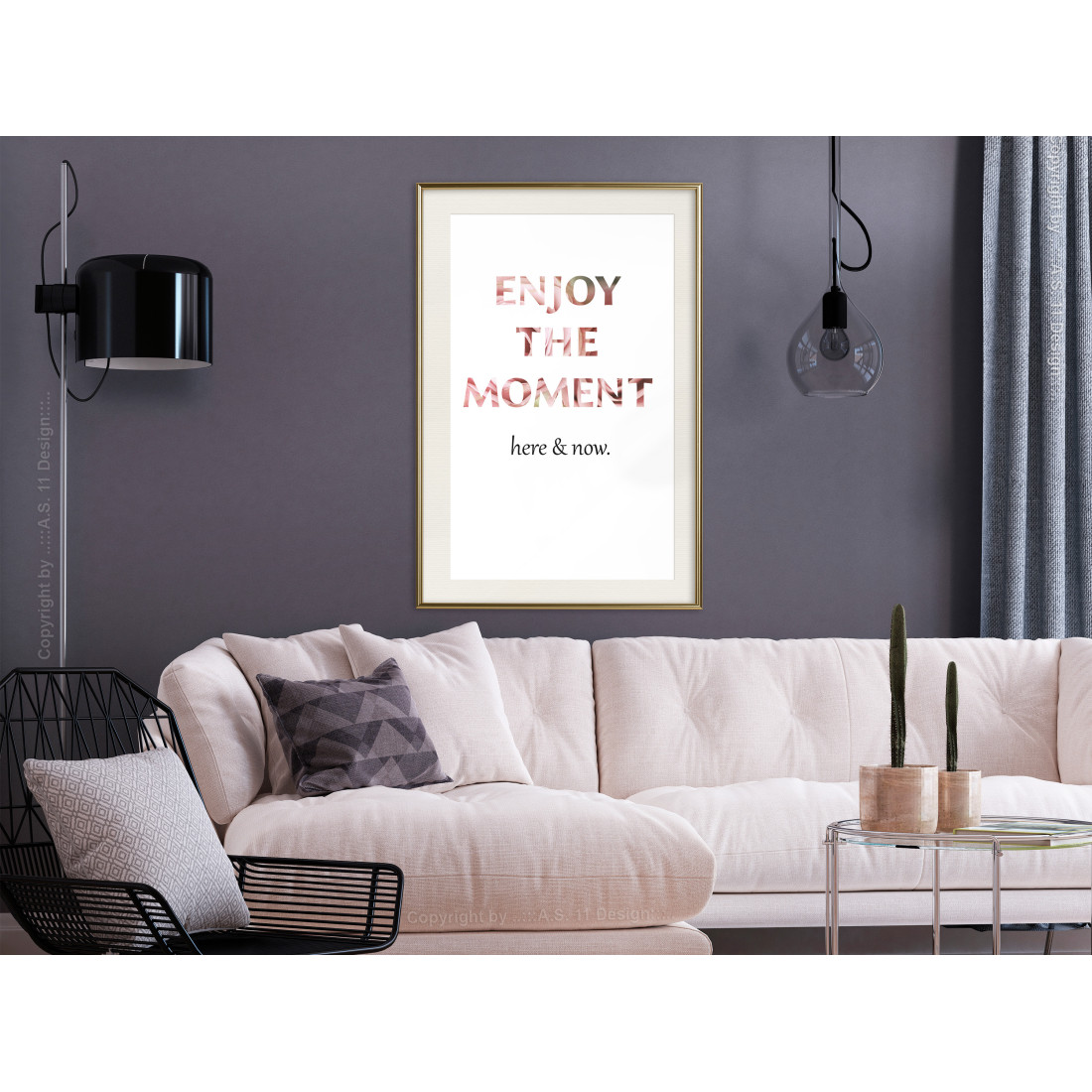 Un poster înrămat poate fi atârnat folosind urechea atașată sau, dacă nu doriți sau nu puteți găuri în perete, este suficient de ușor ca să fie atârnat de banda de fixare și chiar să fie așezat pe podea sau mobilier, sprijinindu-se nonșalant de perete! Efect stilistic garantat!