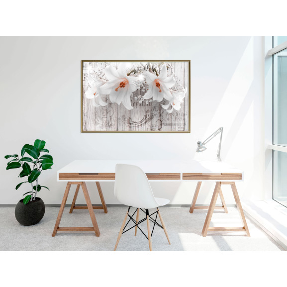 Posterul "Poster - Lilies on Wood" este rodul muncii echipei noastre de stiliști, care se asigură că sugestiile noastre sunt întotdeauna gata la timp. Este disponibil în mai multe formate și tipuri de rame, astfel încât să puteți alege cu ușurință opțiunea care se potrivește nevoilor dumneavoastră.