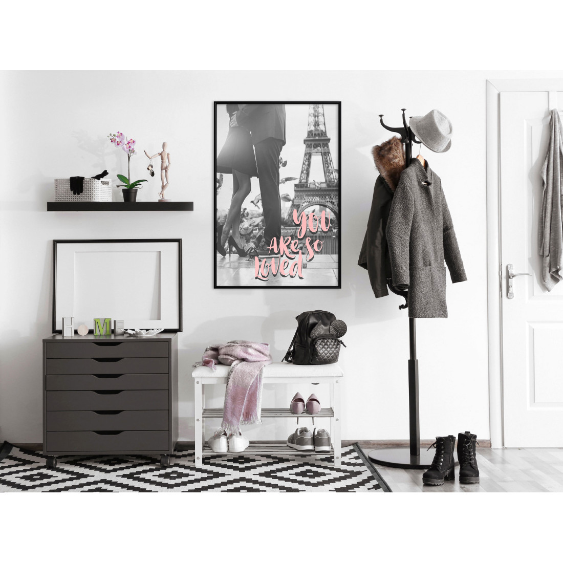 Un poster înrămat poate fi atârnat folosind urechea atașată sau, dacă nu doriți sau nu puteți găuri în perete, este suficient de ușor ca să fie atârnat de banda de fixare și chiar să fie așezat pe podea sau mobilier, sprijinindu-se nonșalant de perete! Efect stilistic garantat!