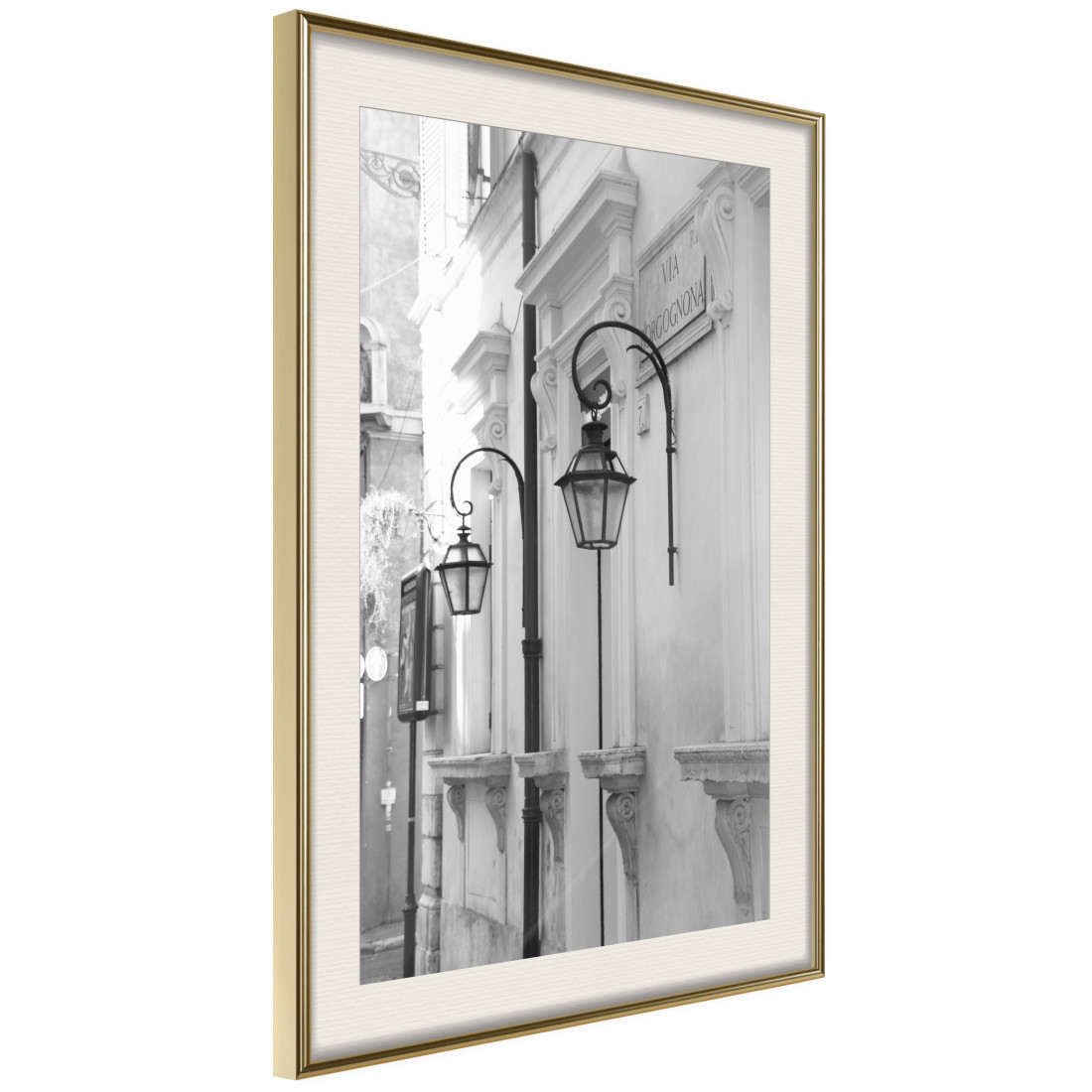 Inserarea passe-partout-ului écru, va accentua culorile posterului și va crea un contrast suplimentar între grafică, ramă și perete. Mai mult, conferă o impresie delicată a unui cadru tridimensional și joacă, de asemenea, rolul unui alt strat protector pentru poster. Posterul este protejat cu sticlă acrilică, având o agățătoare fixată pe partea din spate a ramei.