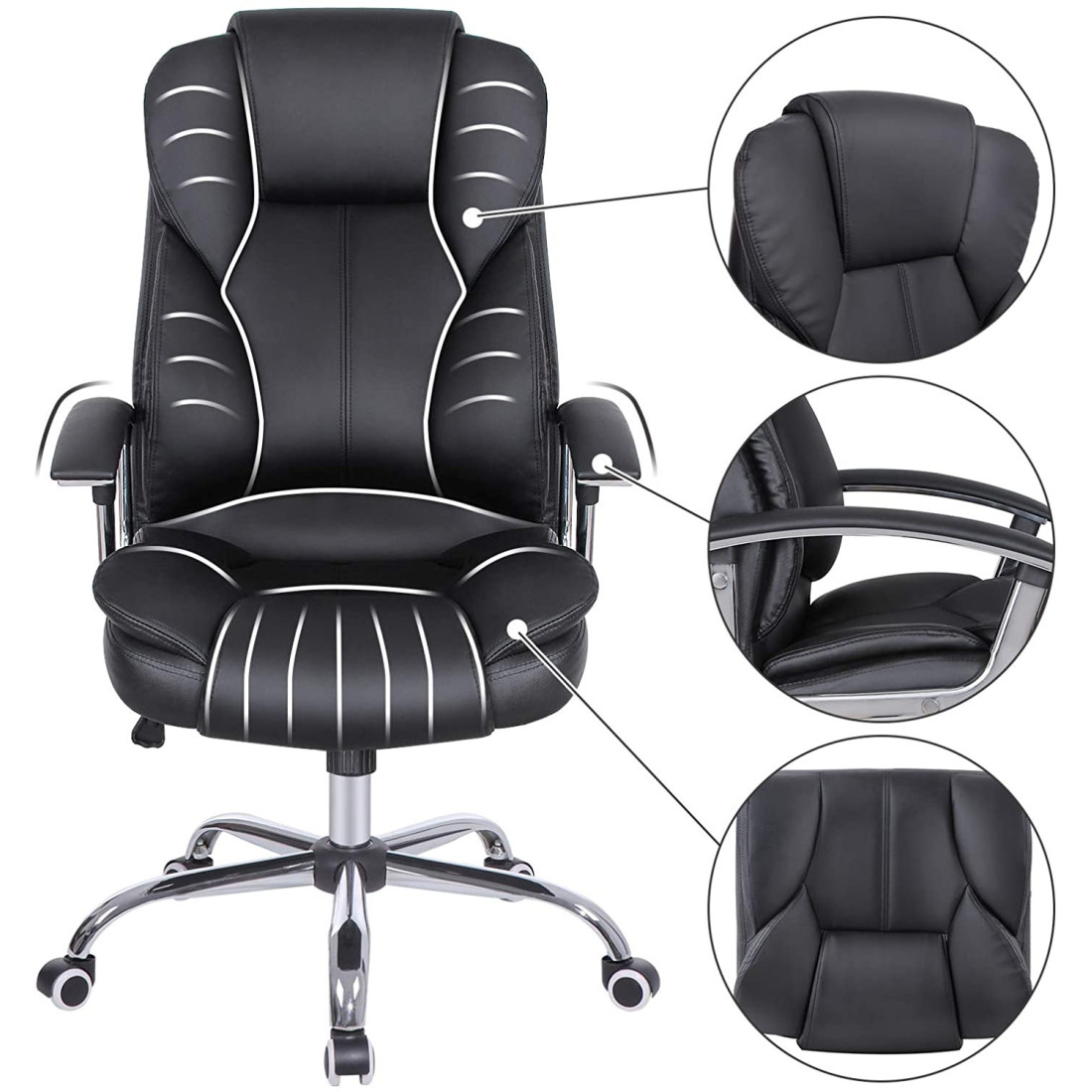 Asigura-te ca adopti o postura corecta atunci cand lucrezi la birou. Scaunul de birou Office asigura postura corecta a coloanei cat si un confort sporit. Inaltimea scaunului, a tetierelor, a cotierelor, cat si a suportului lombar poate fi reglata dupa bunul plac pentru cea mai confortabila pozitie. Datorita spatarului flexibil puteti comuta cu usurinta intre modul de lucru si cel de relaxare, obtinand astfel un scaun ergonomic care va ofera un plus de confort si comoditate gatului, spatelui, lombarului si bratelor, transformand locul de munca intr-unul care inspira. Scaunul are un grad sporit de siguranta, suportand o greutate de pana la 120 kg.