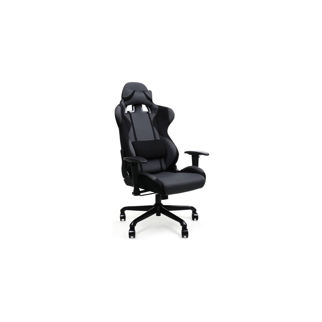 Un scaun de birou pentru gaming construit cu un design sport și ergonomic, cu perna lombară și cervicală reglabila, cu spatar ce urmărește curbura naturală a coloanei. Scheletul metalic este acoperit cu o spuma poliuretanica de inalta densitate.