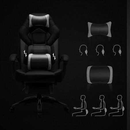 Scaun Birou Racing, Tetiera Reglabila, Gri & Negru, 66 x 69 x 129 Cm-01