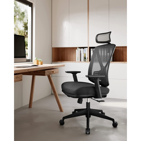 Un scaun de birou ergonomic cu acoperire din plasă care oferă un plus de confort pentru cap, gât, spate și brațe, oferind în același timp un plus de creștere a productivității.