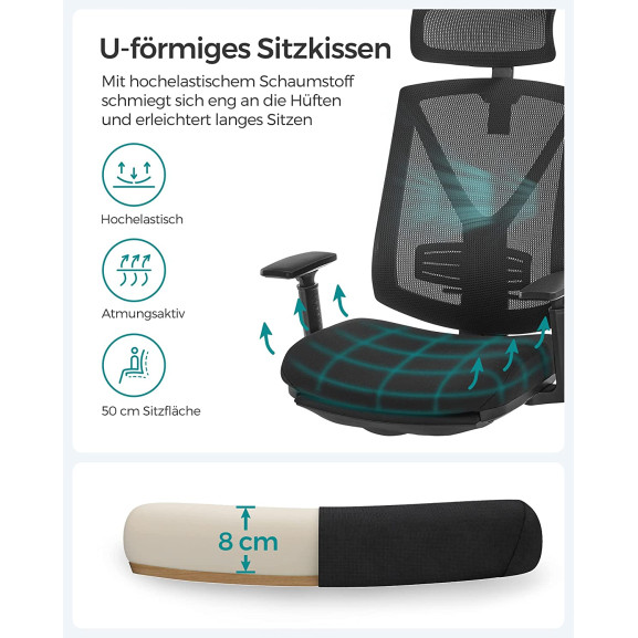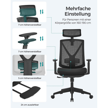 Scaun De Birou Ergonomic Cu Suport Pentru Picioare, Tetiera Si Cotiera Reglabile, Reglare Inaltime, Negru