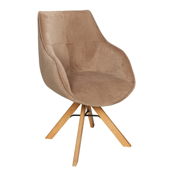 Scaun tapitat realizat din metal, carcasa interioara este din rama de metal si picioare din lemn de stejar finisate smoke oak, confortul este asigurat prin folosirea chingilor elastice si a spumei poliuretanice de inalta rezistenta. Produsul este tapitat cu stofa. Produsul este prevazut cu mencanism rotativ cu auto-return.