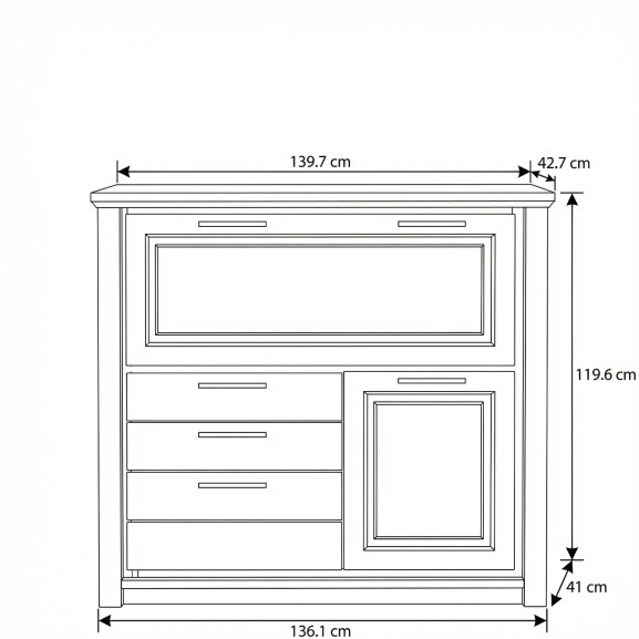 Dimensiuni: Lățime 139.7 cm x Adâncime 42.7 cm x Înălțime 119.6 cm.