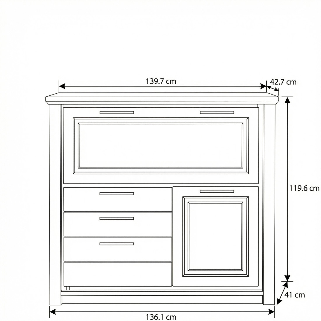 1 Ușă mare rabatabilă (deschidere în jos) cu front casetat.