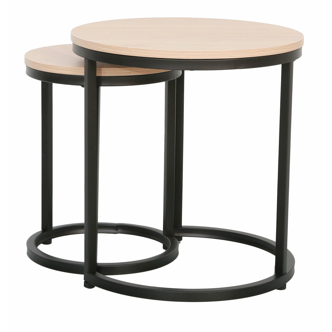 Realizate din metal și MDF laminat, aceste măsuțe combină durabilitatea cu eleganța, oferind un contrast plăcut între negru și finisajul stejar.