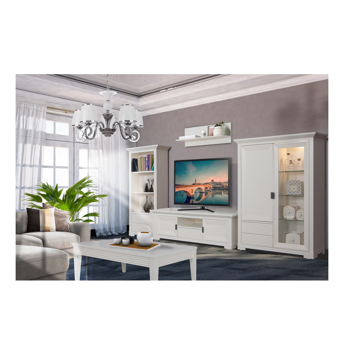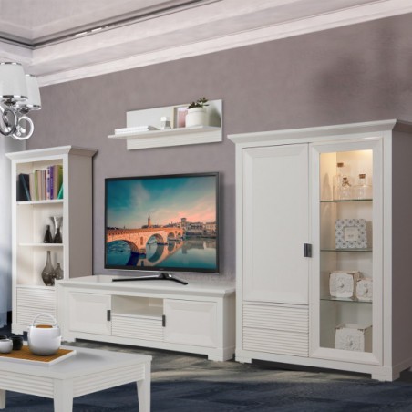 Amenajarea corectă a camerei de zi nu poate avea decat un efect benefic asupra intregului aspect al caminului tau. Amenajeaza-ti camera de zi in stil Verona Bianco: cu o biblioteca pentru cartile tale, cu o comoda tv, o comoda de bar si cu o polita pentru ornamentele tale, astfel vei avea o camera de zi pe gustul tau. Camera de zi Verona Bianco are sistem de inchidere a sertarelor PUSH TO OPEN. Biblioteca are un rol dublu intr-o incapere, ea ofera un loc de depozitat carti dar si un loc pe care poti sa il personalizezi cu obiecte de decor inedit. Biblioteca Verona Bianco iti ofera loc pentru toate si un plus de eleganta si originalitate locuintei tale. Biblioteca Verona Bianco pune accent pe simplitate, abundentă, oferind un aer chic locuintei tal. Aceasta creeaza o atmosfera primitoare si luminoasa. Cele trei rafturi deschise din partea superioara sunt ideale pentru carti sau obiecte decorative. Sertarul din mijloc are sistem de deschidere/inchidere tip Push To Open, ideal pentru organizarea si accesul rapid catre produse de dimensiuni reduse, iar partea inferioara este prevazuta cu doua rafturi acoperite cu o usa.