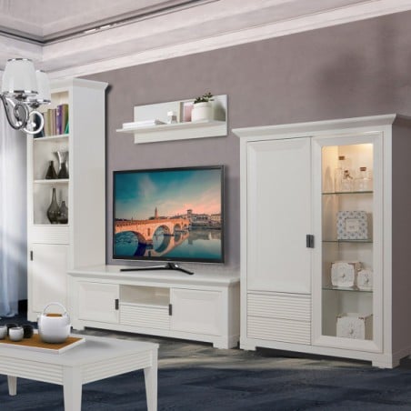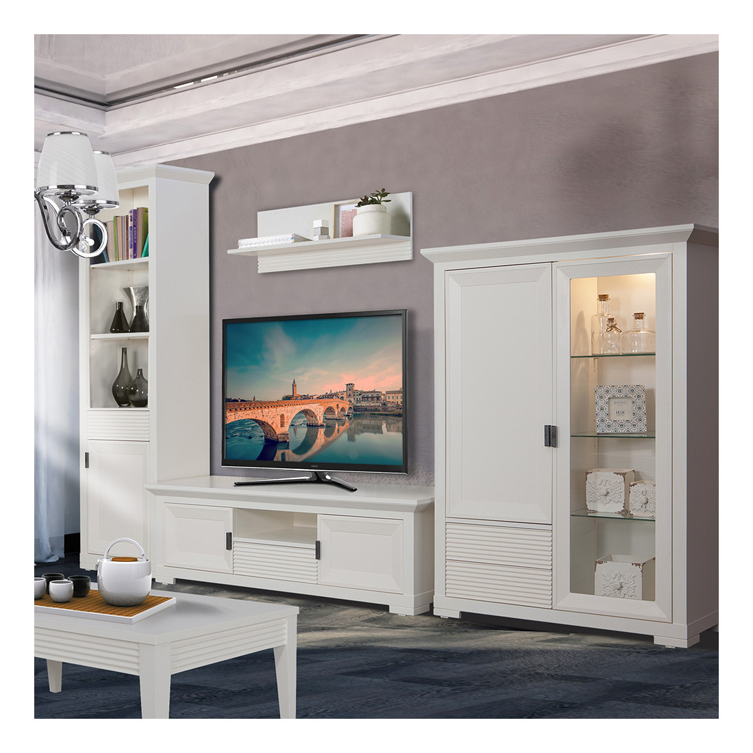 Amenajarea corectă a camerei de zi nu poate avea decat un efect benefic asupra intregului aspect al caminului tau. Amenajeaza-ti camera de zi in stil Verona Bianco: cu o biblioteca pentru cartile tale, cu o comoda tv, o comoda de bar si cu o polita pentru ornamentele tale, astfel vei avea o camera de zi pe gustul tau. Camera de zi Verona Bianco are sistem de inchidere a sertarelor PUSH TO OPEN. Biblioteca are un rol dublu intr-o incapere, ea ofera un loc de depozitat carti dar si un loc pe care poti sa o personalizezi cu obiecte de decor inedit. Biblioteca Verona Bianco iti ofera loc pentru toate si un plus de eleganta si originalitate locuintei tale. Biblioteca Verona Bianco pune accent pe simplitate, abundentă, oferind un aer chic locuintei tale. Cu dimensiunile 65 cm latime, 42 cm adancime si 200 cm inaltime, biblioteca Verona Bianco cu nuanta de alb creeaza o atmosfera primitoare si luminoasa. Cele trei rafturi deschise din partea superioara sunt ideale pentru carti sau obiecte decorative. Sertarul din mijloc are sistem de deschidere/inchidere tip Push To Open, ideal pentru organizarea si accesul rapid catre produse de dimensiuni reduse, iar partea inferioara este prevazuta cu doua rafturi acoperite cu o usa. Comoda tv Verona Bianco cu cele doua usi cu deschiderea dinspre centru acopera cate un raft interior, sertarul este ideal pentru organizarea si accesul rapid catre produse de dimensiuni reduse, iar raftul descoperit este potrivit pentru accesorii, obiecte decorative sau electronice de dimensiuni reduse. Dimensiunile comodei sunt 155 cm latime, 50.2 cm adancime si 47 cm inaltime. Dimensiunile comodei de bar sunt 112 cm latime, 42.2 cm adancime si 147 cm inaltime, ofera spatiu suficient pentru depozitarea diferitelor articole si obiecte decorative. Pe parte dreapta are trei polite din sticla acoperite cu o usa din sticla, iar pe partea stanga cele doua sertare cu sistemul de deschidere/inchidere tip Push To Open sunt ideale pentru organizarea si accesul rapid catre produse de dimensiuni reduse. Cele trei rafturi acoperite cu usa plina sunt potrivite pentru pastrarea mereu la indemana a obiectelor necesare in spatiul unde doriti sa o amplasati. Polita este ideala pentru organizarea unor articole decorative. Dimensiunile acesteia sunt 90 cm latime, 25 cm adancime si 30 cm inaltime.
